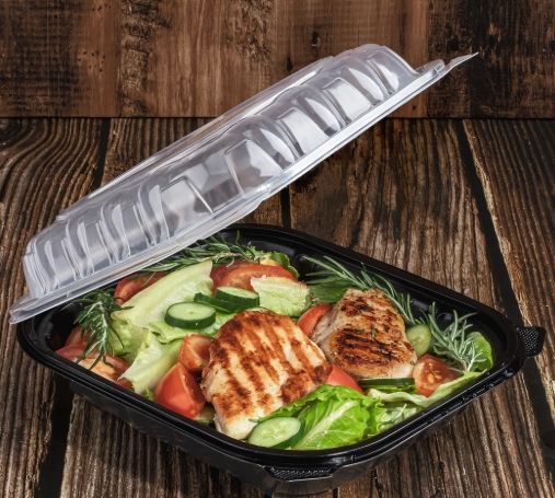 BobaDirect offers three types of hinged food containers, made of PET, PP, and Premium PP, designed for the safe and convenient transport of hot and cold foods. The Premium PP hinged containers are also ideal for hot, fresh food and microwaving, featuring four vents. These containers are sturdy and versatile, making them suitable for all types of food packaging.