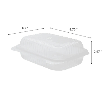 [250 ct] 9” x 6” Hinged Food Containers | PP | Clear