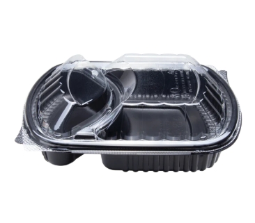 These OPS lid are designed to perfectly fit the 36 oz PP Microwaveable Black Take Out Box, 2-Compartment containers. The OPS Lid is for the 36 oz 2-Compartment PP Microwavable Take out Containers. Each OPS lid has a temperature tolerance of 0-90°C (32-194°F) and can’t be microwaved.