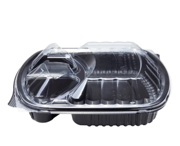 OPS lid are designed to be used with 36 oz PP Microwaveable Black Take Out Box, 3-Compartment. OPS lid matches perfectly with 36 oz PP Microwaveable Black Take Out Box, 3-Compartment! Each OPS lid has a temperature tolerance of 0-90°C (32-194°F) and can’t be microwaved.