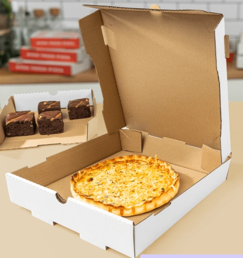 Corrugated Pizza Boxes are crafted for top-notch quality with durable B-flute construction and grease-resistant properties, our boxes ensure your pizzas stay fresh.