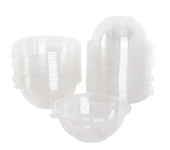 salad bowls provide a tasteful presentation option for cold food. PET plastic is high clarity for easy visibility of the contents inside. Bowls are freezer safe, stackable, and come with pull tabs for easy opening. *Matching PET Dome Lids sold separately.