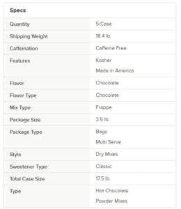 An alternative to iced coffees, this blended frozen hot chocolate instantly spruces up your restaurant or cafe’s menu with its unique twist on an age-old classic! Use as a base for frozen dessert drinks, and delight all of your customers. Its versatility extends to hot chocolate beverages as well. Simply add hot water or ice to the same powdered mix, and satisfy all of your patrons’ hot or cold beverage requests. This mix adds alluring flavor to your signature drinks, while satisfying your patrons’ cravings for something sweet and new!