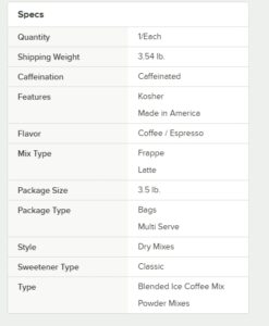 This mix is perfect for sprucing up the menu in your coffee shop or cafe in order to offer profitable, decadent drinks. This blended ice coffee mix adds alluring flavor to your signature drinks, while satisfying your patrons’ cravings for something sweet and new!