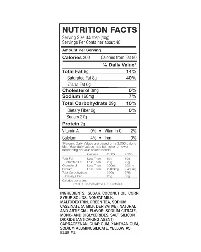 For a tropical, indulgent drink your customers won’t be able to resist, try this Big Train Dragonfly green tea blended creme frappe mix! Whisk your customers off to a tropical getaway with one taste of a specialty drink made from this drink mix! Featuring the flavors of revitalizing, herbal, Asian-inspired green tea blend, use this blended mix to create unique, delicious frappes, iced tea, or perfectly sweetened, creamy hot tea. Coffee-free, this blended frappe mix is a great alternative for customers who do not prefer coffee. Use this mix as a base for blended tea or fruit drinks, and delight all of your patrons! They can rest assured that this mix is trans fat free and contains no hydrogenated oil.