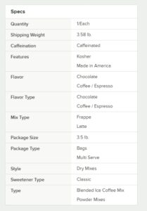 This mix is perfect for sprucing up the menu in your coffee shop or cafe in order to offer profitable, decadent drinks. This blended ice coffee mix adds alluring flavor to your signature drinks, while satisfying your patrons’ cravings for something sweet and new with its versatility as a drink base!