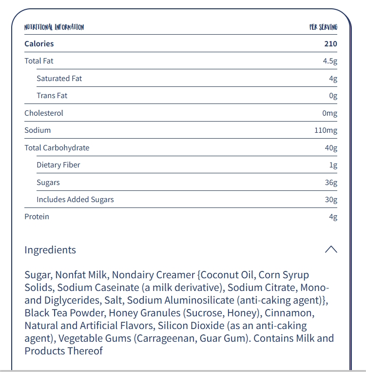 Indulge your customers in the soothing, warming effect of chai with this Big Train spiced chai tea latte mix! Increasingly popular beverages, chai lattes feature a spiced blend of milk and tea that is sure to delight your guests! Creating the perfect chai takes time, experience, and knowledge of spices. Make decadent chai tea lattes with this powder-based mix that allows you to just add your choice of water or milk! Better yet, this chai tea latte mix features a rich spice blend, including cinnamon, clove, and cardamom. These spices are accompanied by the sweet, warm tastes of honey and vanilla, as well as invigorating black tea.