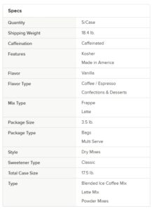 This mix is perfect for sprucing up the menu in your coffee shop or cafe in order to offer profitable, decadent drinks. This blended ice coffee mix adds alluring flavor to your signature drinks, while satisfying your patrons’ cravings for something sweet and new!