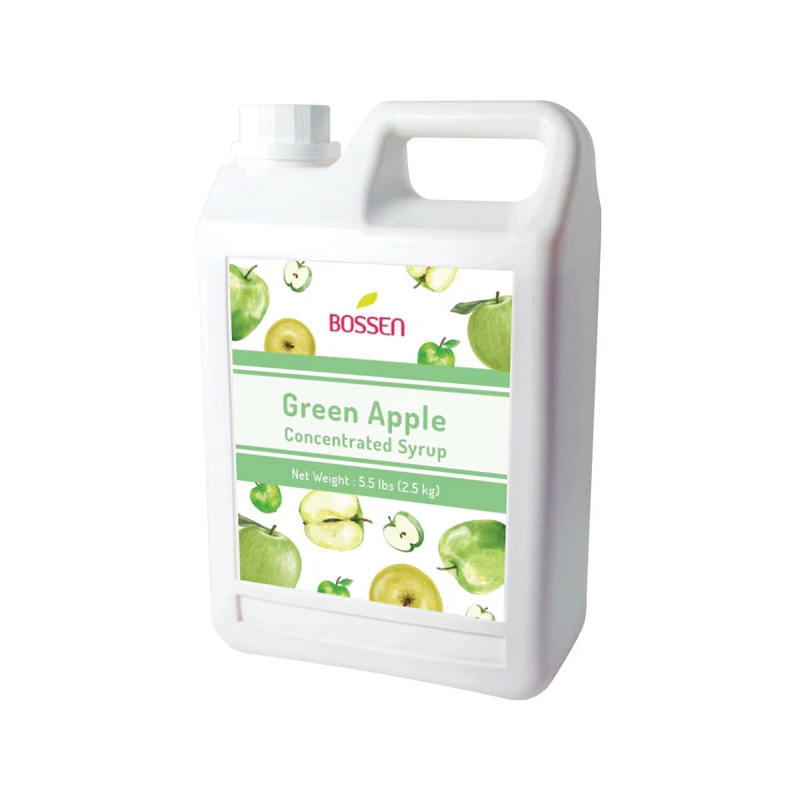 We recommend adding 8 oz. of green apple syrup to every one gallon of plain frozen yogurt. Some stores use this product as a syrup topping on frozen yogurt. In addition to flavoring frozen yogurt, Bossen brand green apple syrup is also used to flavor bubble milk tea, boba smoothies, ice-blended fruit juice, and even snow cones or shaved ice products.