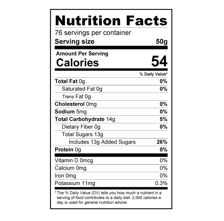 Convenient and ready to use, simply scoop it out of the container and let your creativity shine. Experience the bold and invigorating taste of coffee in a whole new way with our Coffee Jelly! . Per serving 1.76oz to 2.82oz, based on personal preference.