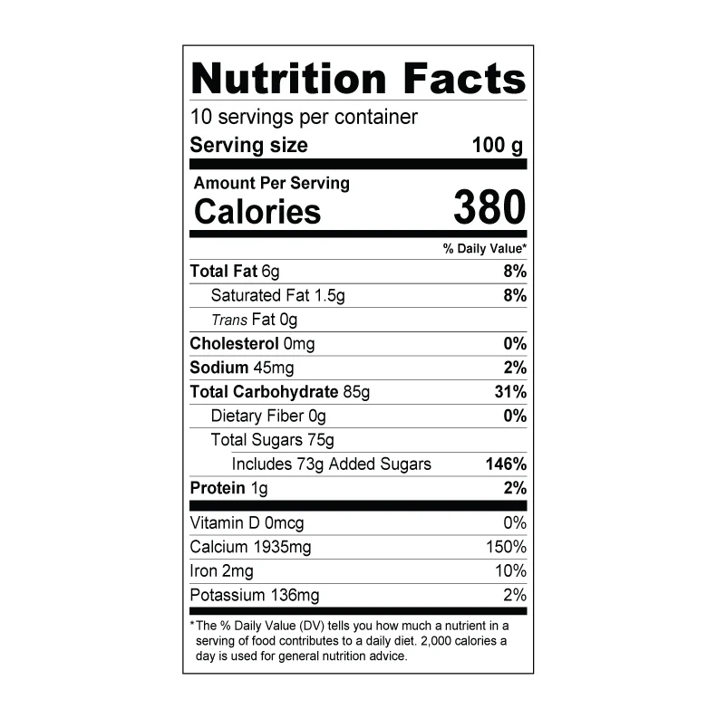 *Processed in a facility that also processes eggs, gluten, milk powder, nuts, and peanuts.