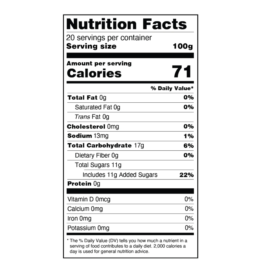 Convenient and ready to use, simply scoop them out of the container and let your culinary creativity run wild. Whether you’re topping your boba teas, garnishing your ice desserts, or stirring them into smoothies, these jelly balls are a versatile and delicious addition to any dish. Per serving 1.76oz to 2.82oz, based on personal preference.