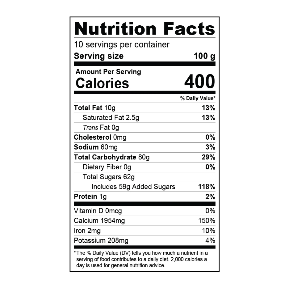 *Processed in a facility that also processes eggs, gluten, milk powder, nuts, and peanuts.