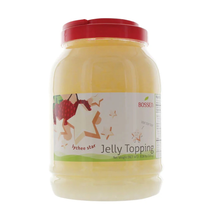 This Lychee Jelly is a clearish white color and comes in a fun star-shape! It has the same great taste as our original lychee jelly. The Lychee Star jelly serves as a perfect topping to bubble teas and smoothies or even to shaved ice, frozen yogurt, or ice cream.