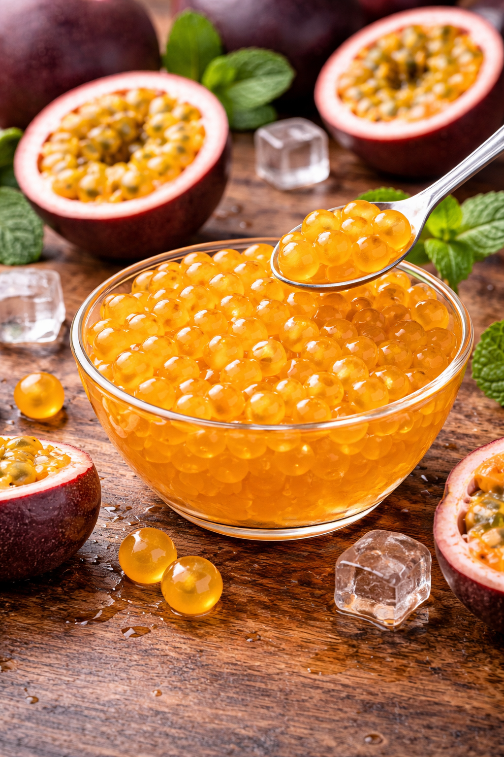 Add a tropical burst of flavor to your drinks with our Passion Fruit Popping Boba Pearls. These vibrant golden pearls are filled with delicious passion fruit juice that pop in your mouth with every bite.