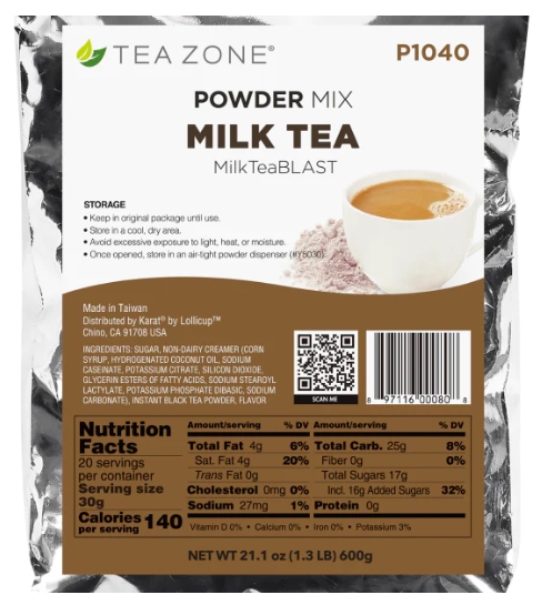 Tea Zone Milk Tea Powder is a premium instant powder to make your milk tea with ease and taste delicious. This lactose-free powder has non-dairy creamer to provide a creamy texture without the allergen and instant black tea powder mixed as well for a delicious black tea flavor. It could be your perfect choice for making milk teas, blended drinks, or other specialty beverages.
